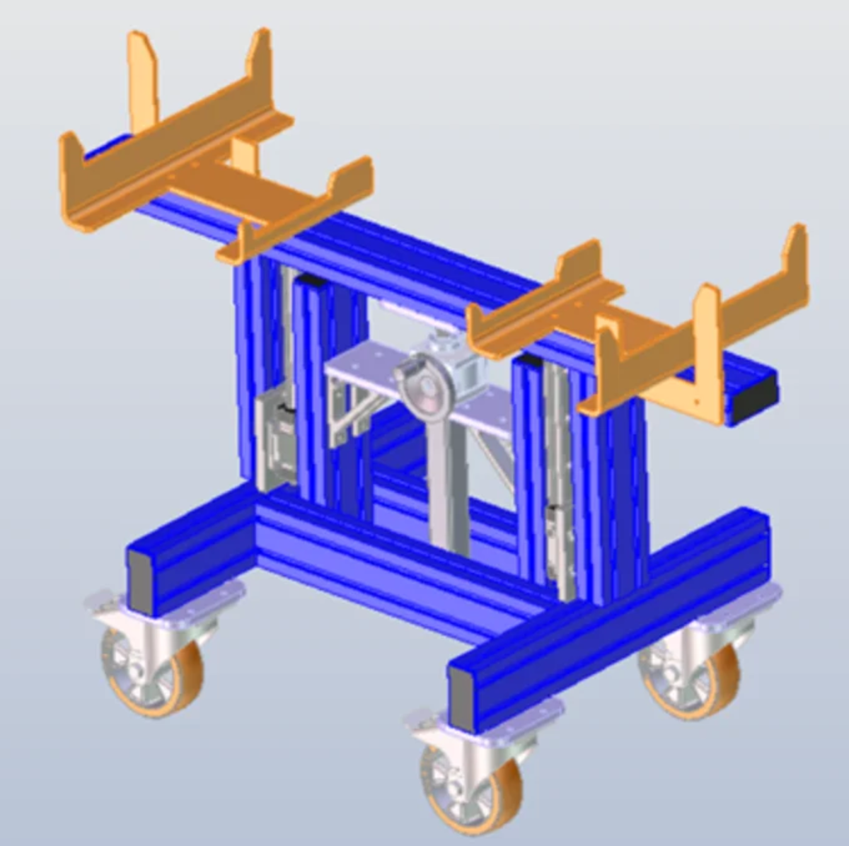 Ein Hebewagen wurde entworfen welche auf vier Lenkrollen steht. Das Grundgestell besteht aus dem Kanya-Profil und das Hebesystem wurde mit einem Spindelhubgetriebe umgesetzt. Die Führung besteh aus zwei Monorail Führungen, welche für eine lange Lebensdauer garantieren. Der Antrieb ist mit einer Handkurbel ausgestattet. Sowohl als auch kann eine Bohrmaschine am Spindelhubgetriebe eingespannt werden, so dass der Verfahrweg elektrisch angetrieben wird.