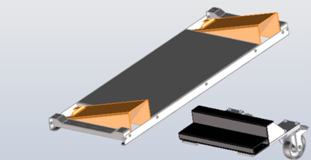 Für die schief aufliegende Schneidebrücke wurden zwei abgekantete Blechauflagen entworfen, welche auf den Hublift platziert werden können. Die Schneidebrücke ist nun waagrecht ausgerichtet.