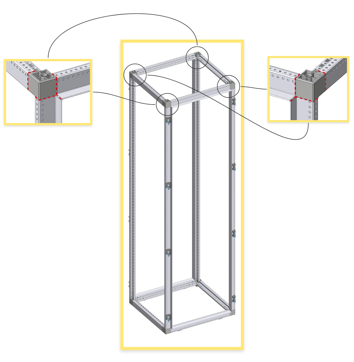 Automatisierte Eckstückabdichtung am IP55 Gestell