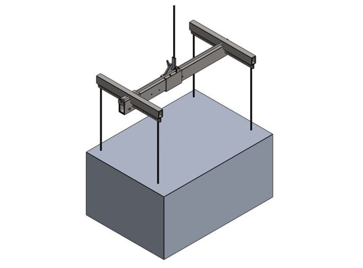 Die Konstruktion besteht aus hauptsächlich drei Vierkantrohren. Diese Rohre bilden die Traverse. Ein Querrohr der Traverse kann verschoben werden. Somit kann die Länge den Motoren angepasst werden. Um die Neigung zu verstellen, kann die Kranlasche mithilfe einer Gewindespindel verstellt werden. Um die Breite je nach Motortyp anzupassen, kann das Anschlagmittel an verschiedenen Punkten an den Quertraversen fixiert werden.