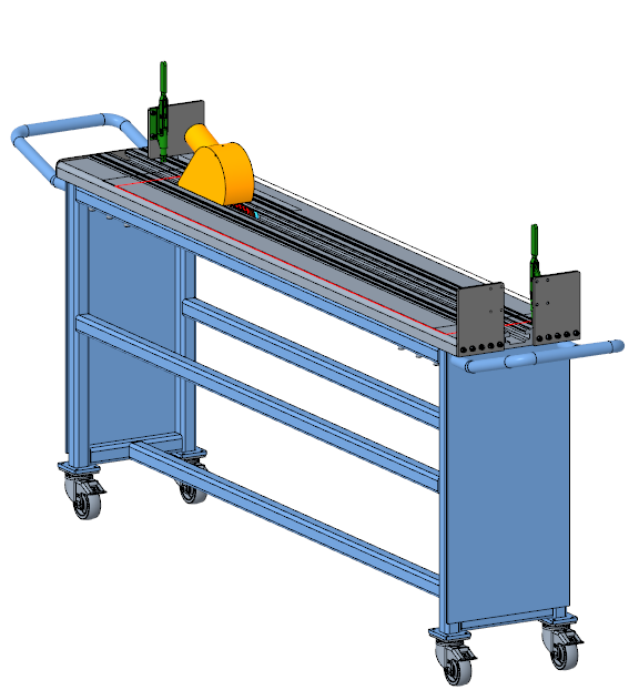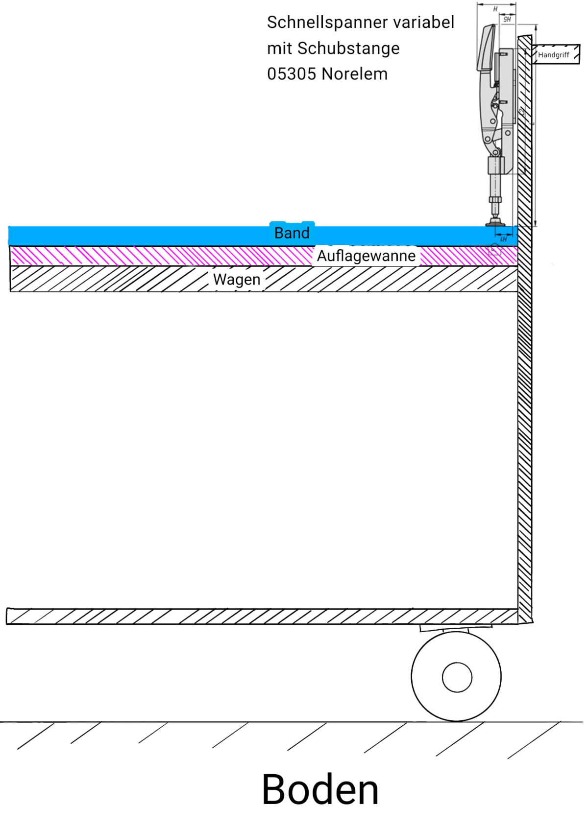 In der Firma Habasit AG wird im Jahr 2024 eine neue Extrusions- und Prägeanlage (EXTR-06) als neue Produktionslinie in Betrieb genommen. In diesem Zusammenhang wird eine mobile Schneideinheit benötigt, die in der Lage ist, die Produkte von der bestehenden Wide Timing Belt Anlage (WTBA-02) quer zur Produktionsrichtung zu schneiden. Die Anlage produziert Bänder mit einem Zahnprofil. Das Ziel der mobilen Schneideinheit besteht darin, das Band mit dem Zahnprofil genau in der Mitte zweier Zähne zu durchtrennen, damit es zu einem späteren Zeitpunkt mit einem anderen Band zusammengeklebt werden kann und die Zahnteilung (pitch) korrekt bleibt.
