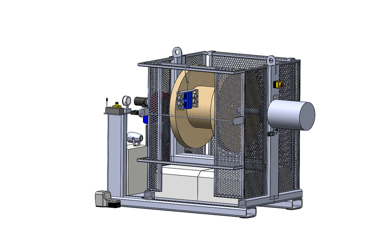 Das Ziel war die Erstellung eines Konzeptes einer Aufnahmevorrichtung für Seilbobinen, um während der Wartung von Baukranen das Seil vom Kran auf die in der Vorrichtung montierte Bobine aufzuwickeln, dabei eine Kontrolle durchzuführen und das Hubseil anschliessend mit dem vom Kranhersteller vorgegebenen Widerstand von 500 kg wieder auf den Kran aufzuziehen.
