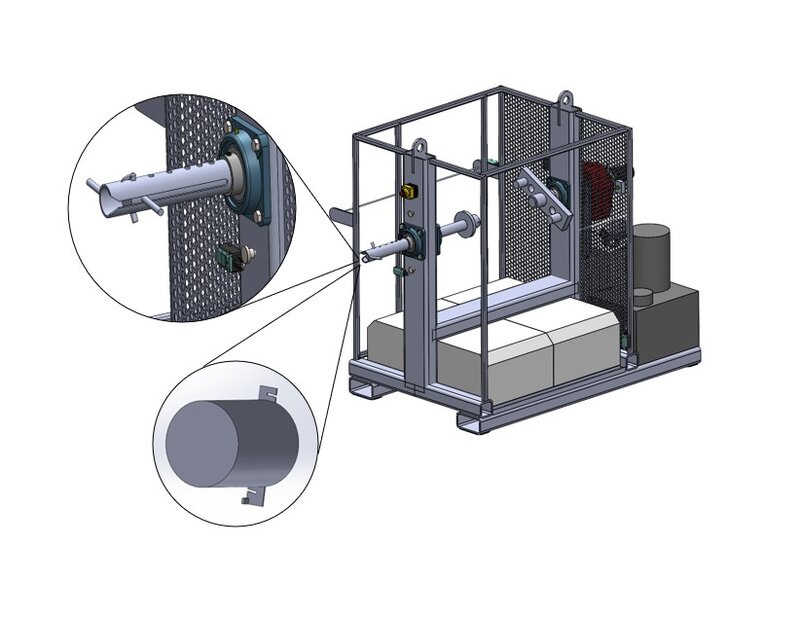 Das Ziel war die Erstellung eines Konzeptes einer Aufnahmevorrichtung für Seilbobinen, um während der Wartung von Baukranen das Seil vom Kran auf die in der Vorrichtung montierte Bobine aufzuwickeln, dabei eine Kontrolle durchzuführen und das Hubseil anschliessend mit dem vom Kranhersteller vorgegebenen Widerstand von 500 kg wieder auf den Kran aufzuziehen.