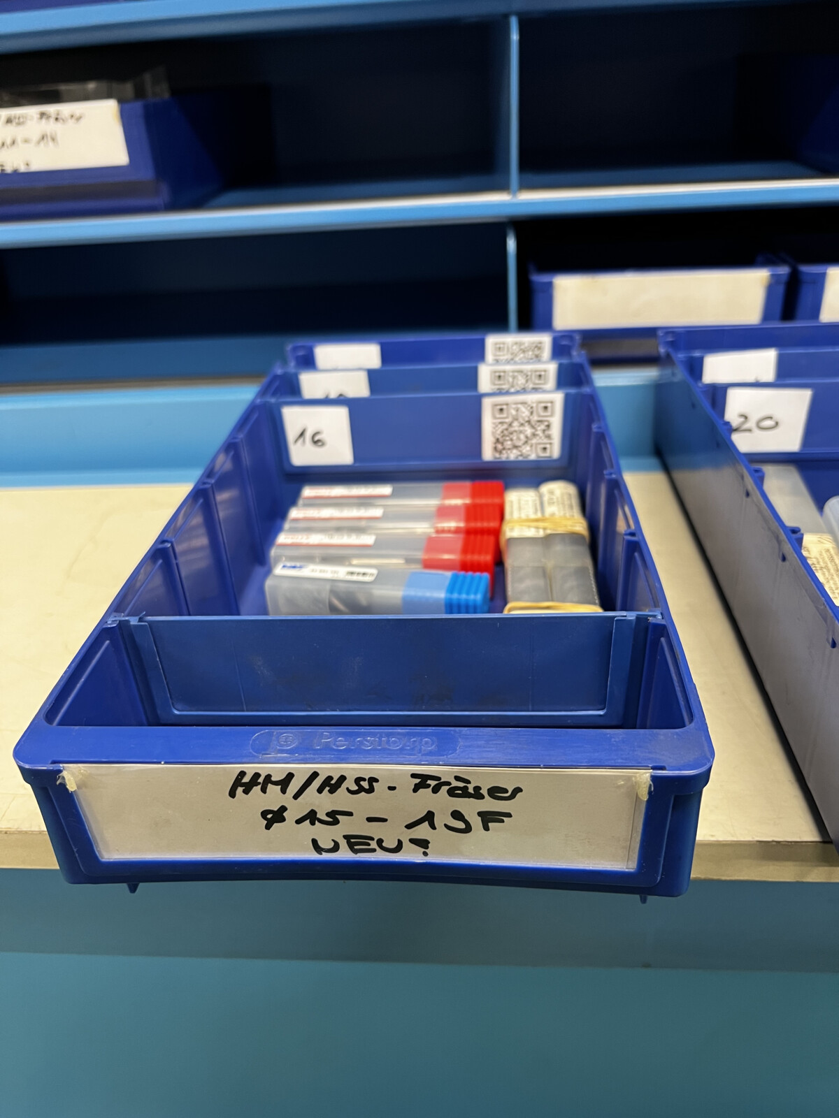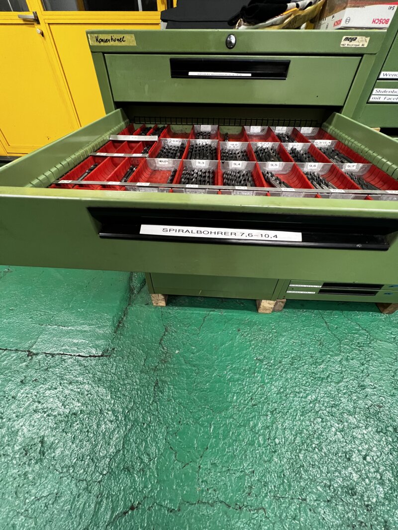 Ziel des Projektes war die Optimierung der Einrichtzeiten durch das Einrichten eines neuen Werkzeugzimmers inklusive Ordnungssystems und Umstellung des Bestellprozesses mittels QR-Codes.