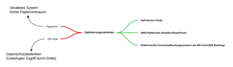 Zur Umsetzung wurden drei Varianten in Betracht gezogen: Self-Service Plattform, DMS-Plattform und MS Forms/MS Bookings. Die Evaluation anhand der Eisenhower-Methode und einer Nutzwertanalyse ergab, dass die Nutzung von MS Forms und MS Bookings die beste Option ist. Diese Lösung ist kosteneffizient, da sie bereits innerhalb der bestehenden Microsoft 365-Infrastruktur verfügbar ist und die Benutzer bereits mit diesen Tools vertraut sind. Die wichtigsten zu digitalisierenden Dokumente wurden in Zusammenarbeit mit verschiedenen Fachbereichen identifiziert. Diese wurden entsprechend überarbeitet und als ausfüllbare Formulare in MS Forms erstellt. Um sicherzustellen, dass die Dokumente korrekt verarbeitet wer-den, wurde ein Workflow mittels MS Power Automate eingerichtet, der die Dokumente an die richtigen Stellen weiterleitet. Die erweiterte Applikation bietet eine benutzerfreundliche Ober-fläche, auf der die Fahrer ihre Dokumente verwalten können. Diese Digitalisierung trägt zur Kostensenkung, Effizienzsteigerung und Verbesserung der Arbeitszufriedenheit bei und leistet zudem einen Beitrag zum Umweltschutz. Die Integration in das bestehende System minimiert den Schulungsaufwand und stellt sicher, dass die Mitarbeiter die neue Lösung effektiv nutzen können.