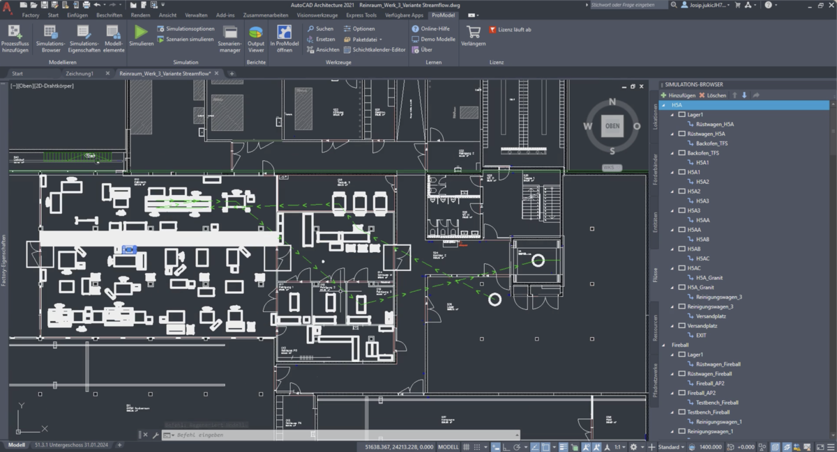 Der Ist-Zustand wurde detailliert verfasst. Mit der bestehenden 214 m2 Nutzfläche der Montage, ist die Produktion dicht belegt und es besteht kaum noch Platz für eine optimale Arbeitsumgebung. Mit unterstützender Software von Autocad und Promodel, habe ich die Arbeitsplätze massstabsgetreu aufgenommen. Die Möglichkeit die ich hatte mittels Promodel zu simulieren, zeigte mir auf, wo die Engpässe sind. Mit einem Zuwachs von 45,8 % zu 312 m2 Montagefläche in Neubau von unserem Werk 3, konnte ich die Arbeitsplätze in 3 verschieden Varianten platzieren. Aus den Bewertungen und Umfragen erzeugte ich die Variante Streamflow als die geeignetste. Durch die Lean Philosophie haben wir Optimierungen implementiert und durch Kontinuierliche Verbesserungen, sorgen wir nachhaltig für eine schlanke Produktion.