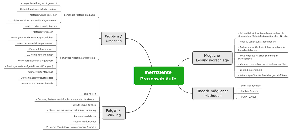 Es wurden mittels Brainstormings und Mind-Map mögliche Lösungsansätze zusammengetragen.