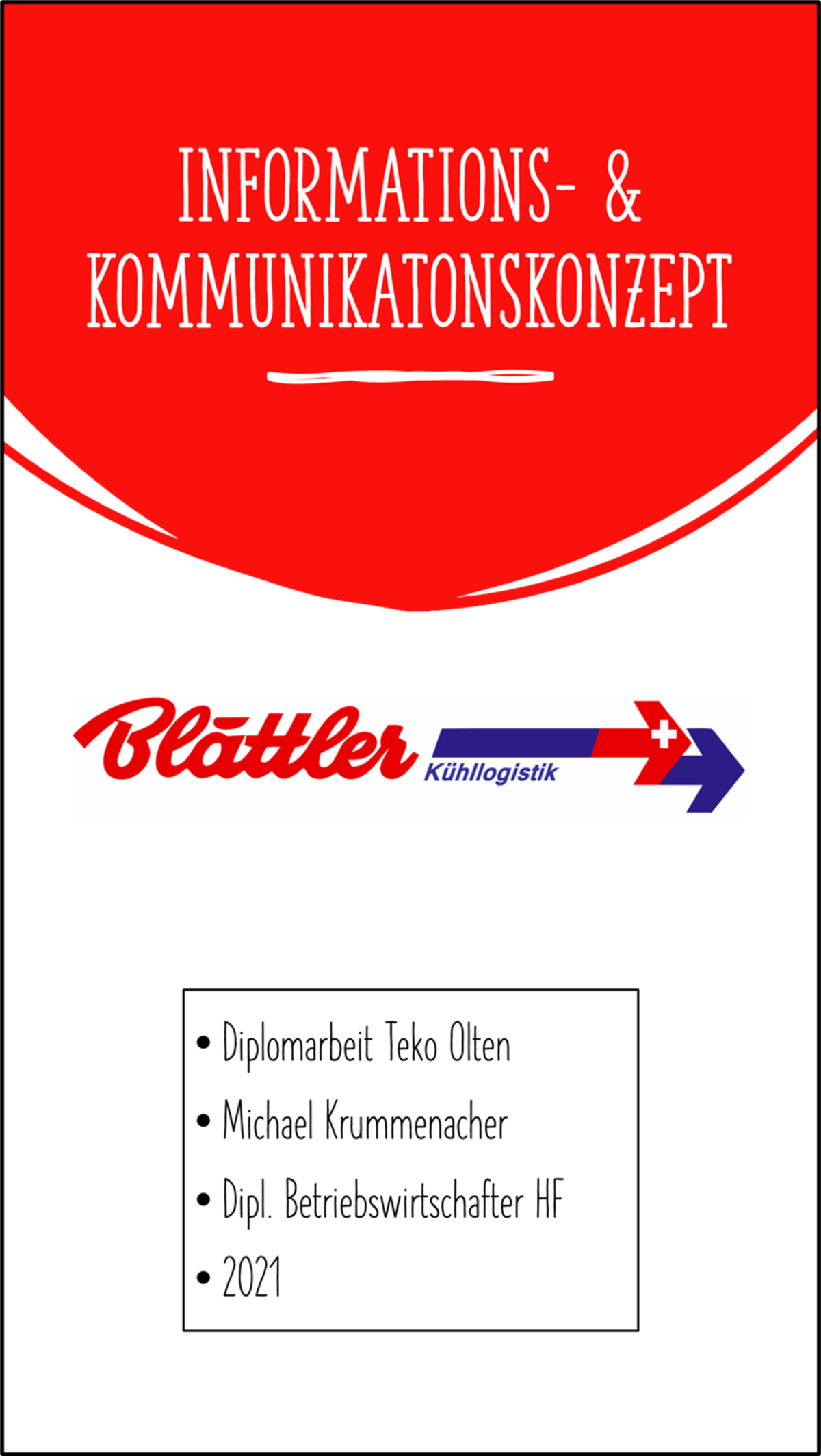 Viele Probleme und Reibungspunkte sind aufgrund verbesserungswürdiger Kommunikation und Information zurückzuführen. Dies kommt speziell in Unternehmen zu Tage. Ich habe mich entschieden ein reales Unternehmen für meine Diplomarbeit anzufragen. Ich habe ein Informations- & Kommunikationskonzept erstellt. Es ist speziell auf die Firma Blättler zugeschnitten. Eine Win-Win Situation. Auf meiner Seite hatte ich einen Projektpartner mit einer realen Problemstellungen und auf der anderen Seite hatte die Firma am Ende ein fertig anwendbares Konzept.