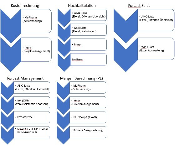 Die Aufgaben vom Controlling, wie z.B Kostenrechnung, Nachkalkulation, Analysen Akquisen, Forecast, oder Margen Berechnung erfolgt mit sehr vielen Schnittstellen zwischen verschiedenen Softwarelösungen und manuellen Schritten.