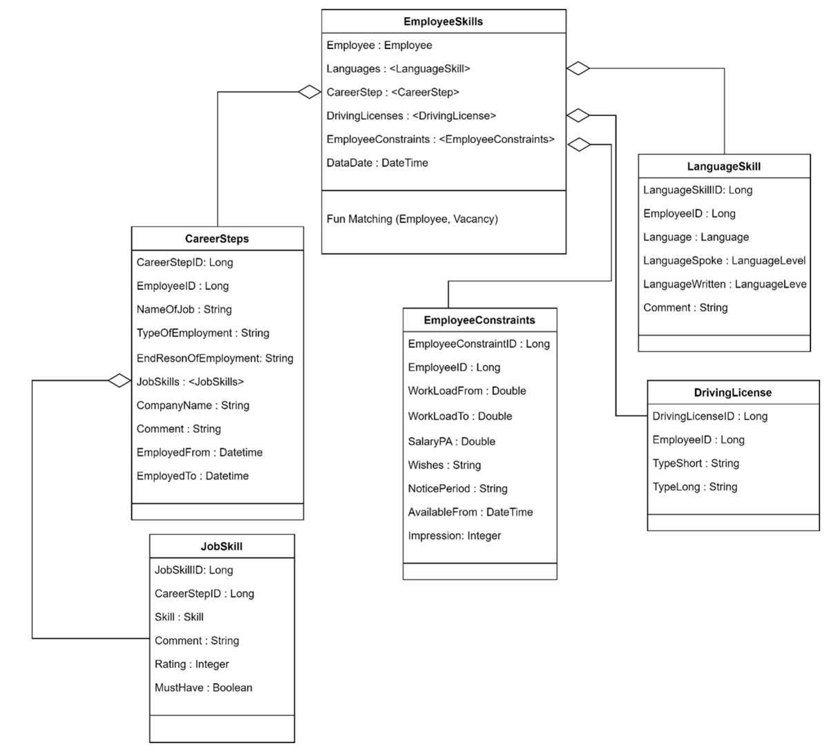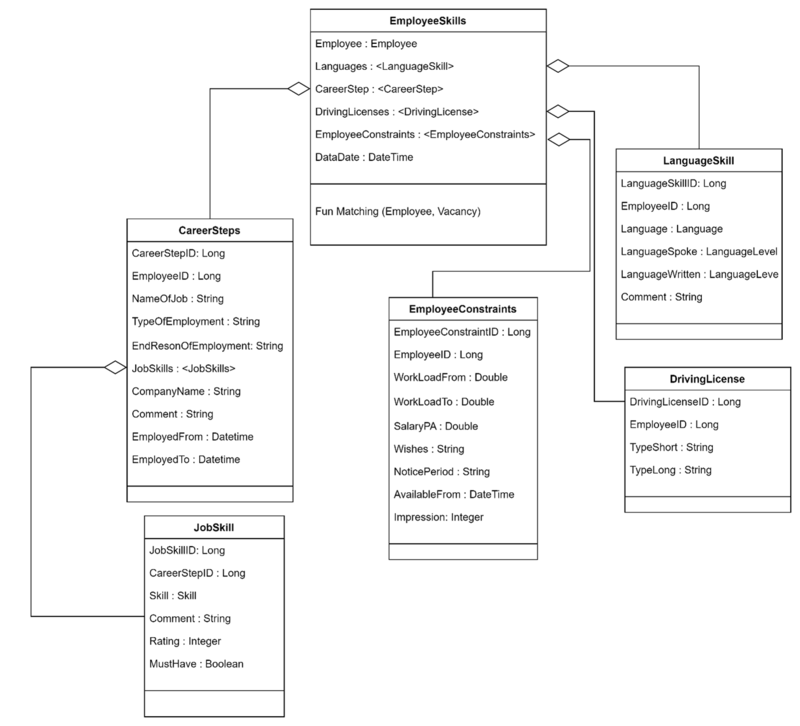 Ziel der Diplomarbeit war es, einen neuen Matching-Algorithmus zu entwickeln und die dazugehörige Objektstruktur aufzusetzen. Als Unternehmen der Personalverleihbranche sind wir fortwährend bestrebt, bessere Kandidatenprofile innerhalb kürzerer Zeit für unsere Kunden zur Verfügung zu stellen, um so die Rekrutierungszeit zu verringern. Durch das Analysieren der bestehenden Strukturen und das Ausarbeiten von Modellen, konnte ich mein Erlerntes anwenden, um so eine moderne Objektstruktur aufzusetzen.