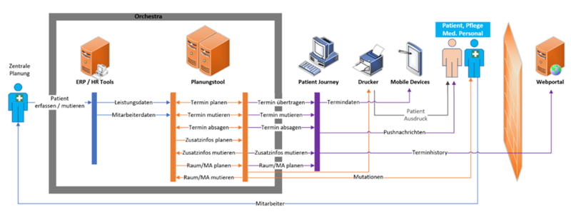 Systemlandschaft und Schnittstellen vor der Implementierung der Patient Journey App