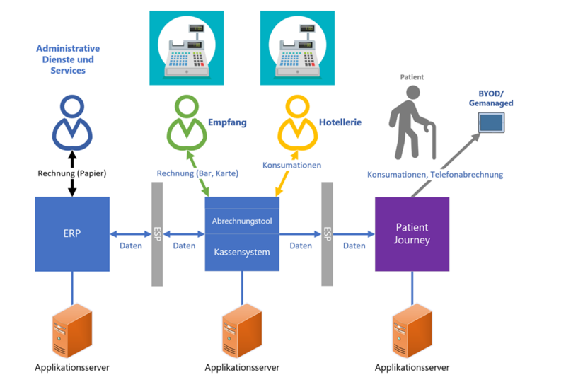 - ERP: Zentrales ERP für Patientenverwaltung, Abrechnung und medizinische Codierung.