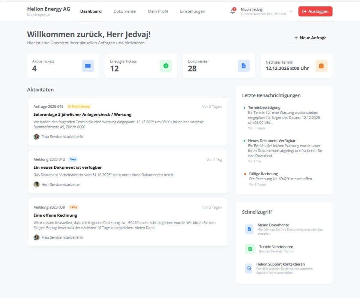 In einer Zeit, in der digitale Services zum Alltag gehören und Kunden schnelle, klare Informationen erwarten, entscheidet oft der Faktor Transparenz über eine gute Serviceerfahrung. Wenn Anfragen übersichtlich sind, Dokumente zentral verfügbar sind und die Kommunikation einfach gelingt, entsteht Vertrauen. Doch wie entwickelt man eine Plattform, die all das vereint? Diese Fragen wurden in meiner Arbeit analysiert und in einem umfassenden Konzept für die Helion Energy AG beantwortet.