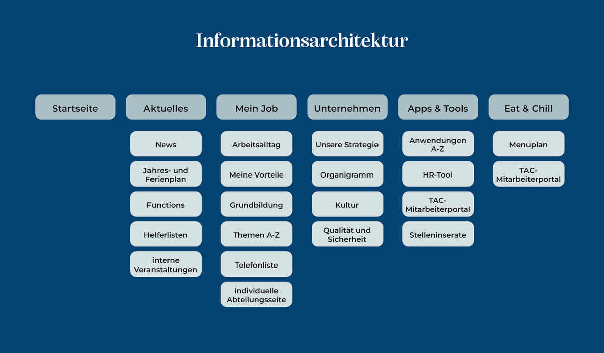Diese Ausgangslage macht klar: Ein strukturiertes Intranet ist notwendig, um Informationsflüsse zu bündeln und die interne Kommunikation nachhaltig zu verbessern.