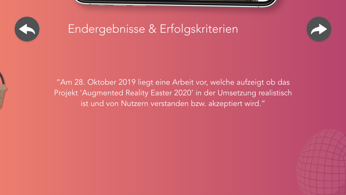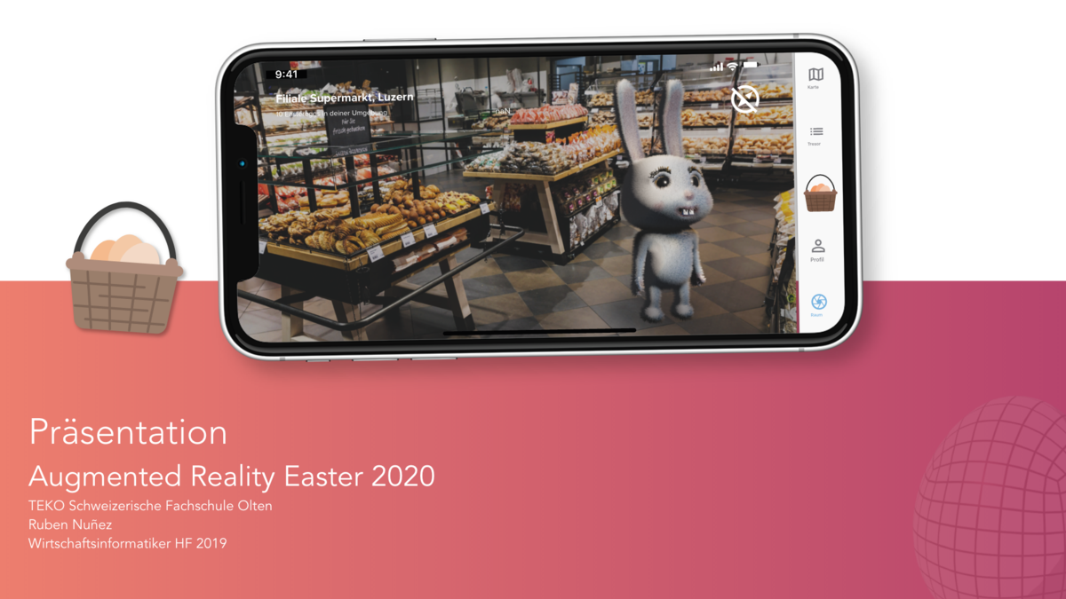 Im Projekt ‘Augmented Reality Easter 2020’ wird eine App geplant, welche von grossen Detailhandelsunternehmen für eine Marketingkampagne verwendet werden kann.